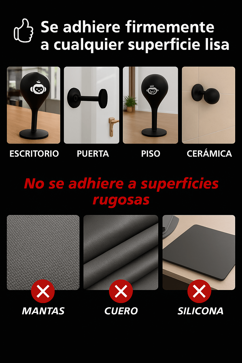 No. Su base con ventosa pro-grip se fija a superficies lisas (madera, vidrio, baldosa o metal).